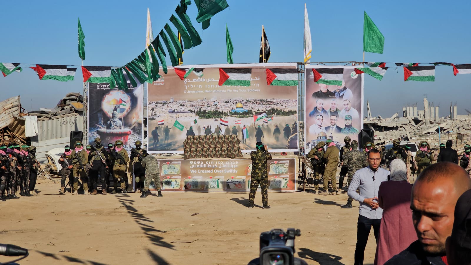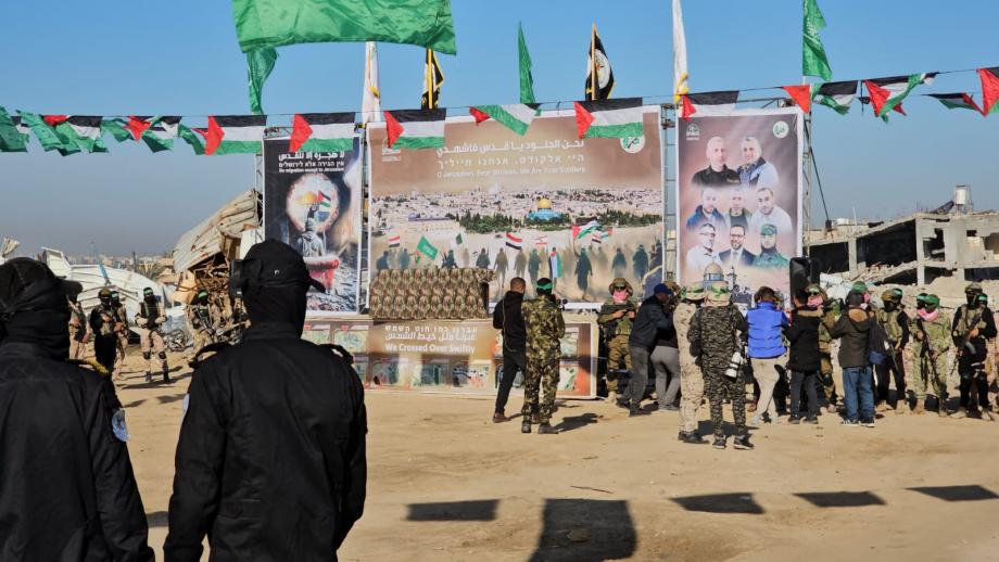 ضمن مراسم عملية تسليم الأسرى الإسرائيليين بمدينة خان يونس، وتحديدا من على موقع المكان المراد فيه مجريات التسليم، علّقت كتائب القسام الجناح العسكري لحركة "حماس"، خلف المنصة التي يُجرى عليها توقيع تسلم الصليب الأحمر للأسرى، صورة حاملة سبعة من قادتها الشهداء الذين استشهدوا خلال الحرب على غزة، فمن هم هؤلاء القادة؟
