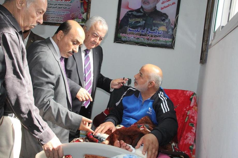 وضم الوفد الزائر كلاً من مفيد الحساينة وزير الأشغال العامة والإسكان ومأمون أبو شهلا وزير العمل وهيفاء الأغا وزيرة شؤون المرأة، الذين قدموا التهاني للواء أبو نعيم بسلامته من محاولة الاغتيال التي استهدفته ظهر الجمعة الماضي، مُعبّرين عن استنكارهم لهذ الحادثة الآثمة.