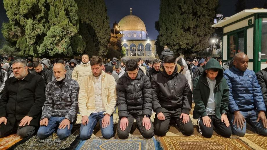 وقدّرت دائرة الأوقاف الإسلامية في القدس أن “نحو 60 ألف مصل أدوا صلاتي العشاء والتراويح في رحاب المسجد الأقصى”، غالبيتهم من أبناء المدينة المقدسة أو من داخل أراضي عام 1948، حيث تحرم سلطات الاحتلال آلاف المواطنين من محافظات الضفة الغربية من الوصول إلى القدس لأداء الصلاة في المسجد الأقصى.