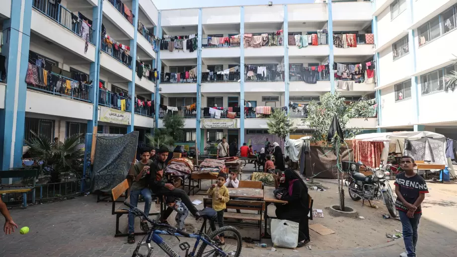 يقيم تيسير برفقة والده واخوته الخمسة وأولادهما في فصول دراسية داخل مدرسة إيواء في مخيم النصيرات نزح إليها في يناير/ كانون ثان 2024م بعد نزوحه ثلاثة أشهر داخل مدرسة "أونروا" في مخيم البريج.