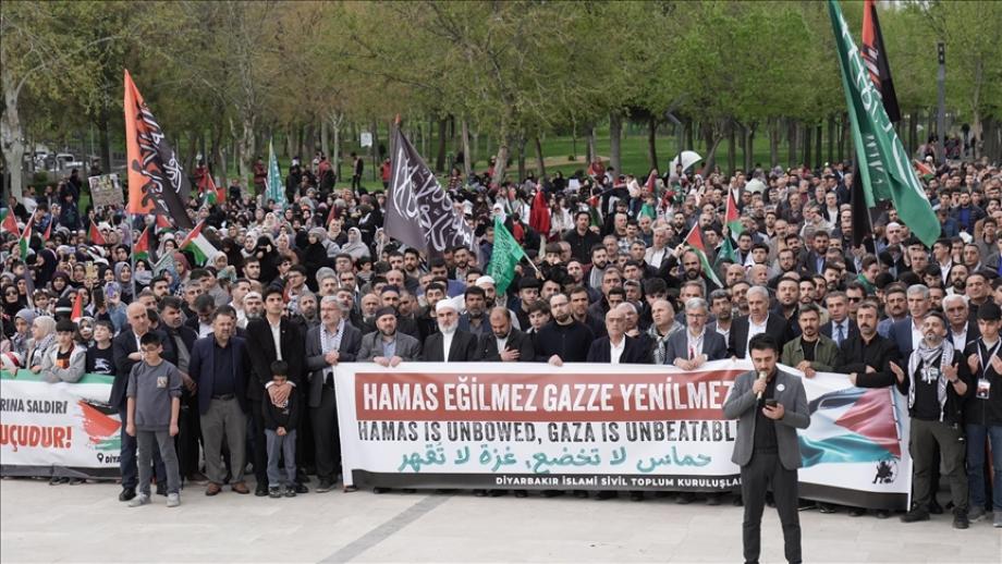 وفي جنوب شرقي تركيا، شهدت ولاية دياربكر مسيرة مناهضة لإسرائيل بسبب الإبادة الجماعية التي ترتكبها بحق الفلسطينيين في غزة، بدعوة من منظمات مجتمع مدني إسلامية.