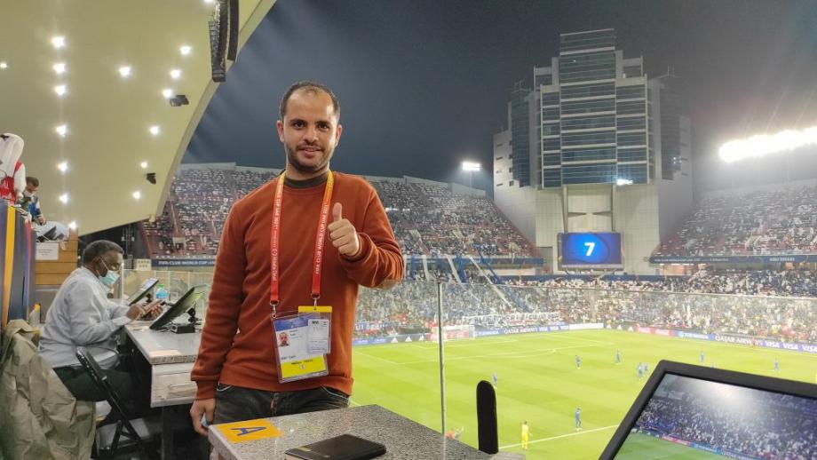 هو الصحفي الرياضي الأشهر في قطاع غزة، المثابر، المتألق، المتوّج بالجوائز، الذي كان صوته يُسمع في كل الملاعب، وابتسامته لا تفارقه في المؤتمرات والفعاليات، صار اليوم إنسانًا يحمل على كتفيه ما يفوق طاقة البشر.