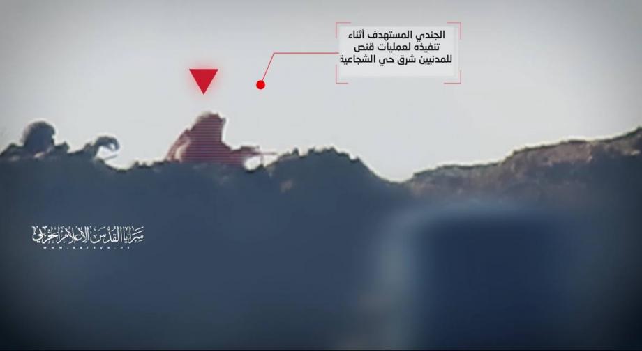 بثت سرايا القدس الجناح العسكري لحركة الجهاد الإسلامي، مشاهد من رصد وقنص مجاهديها لقنّاص صهيوني أثناء تنفيذه عمليات قنص للمدنيين من أعلى تلة المنطار بحي الشجاعية شرق مدينة غزة.