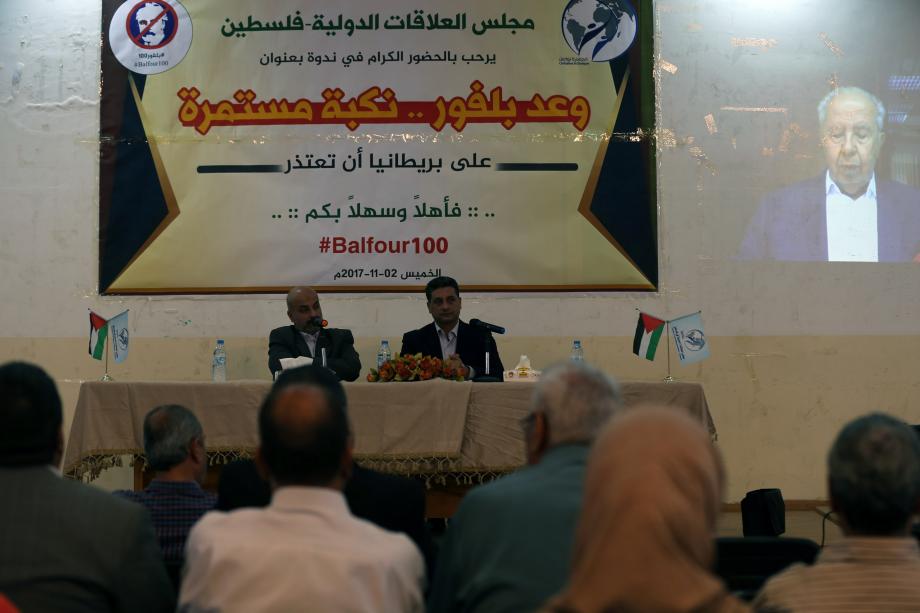 جاء ذلك خلال ندوة نظمها مجلس العلاقات الدولية اليوم الخميس، تحت عنوان "وعد بلفور.. نكبة مستمرة" في قاعة الهلال الأحمر بمدينة غزة، بحضور نخبة من الكتاب والمثقفين.