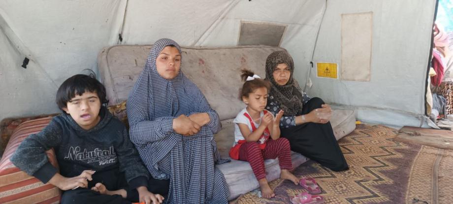 داخل خيمة صغيرة نصبت أوتادها في مدرسة الموهوبين التي تحوّلت لمركز إيواء للنازحين، تجلس جواهر الفيري (24 عاماً) على فراش مهترئ، وعيناها تحكيان معاني القهر والوجع من الواقع الأليم الذي فرضته حياة النزوح القسري الجديدة عليها برفقة أطفالها ووالدتها وشقيقها المصاب بمرض "متلازمة داون".