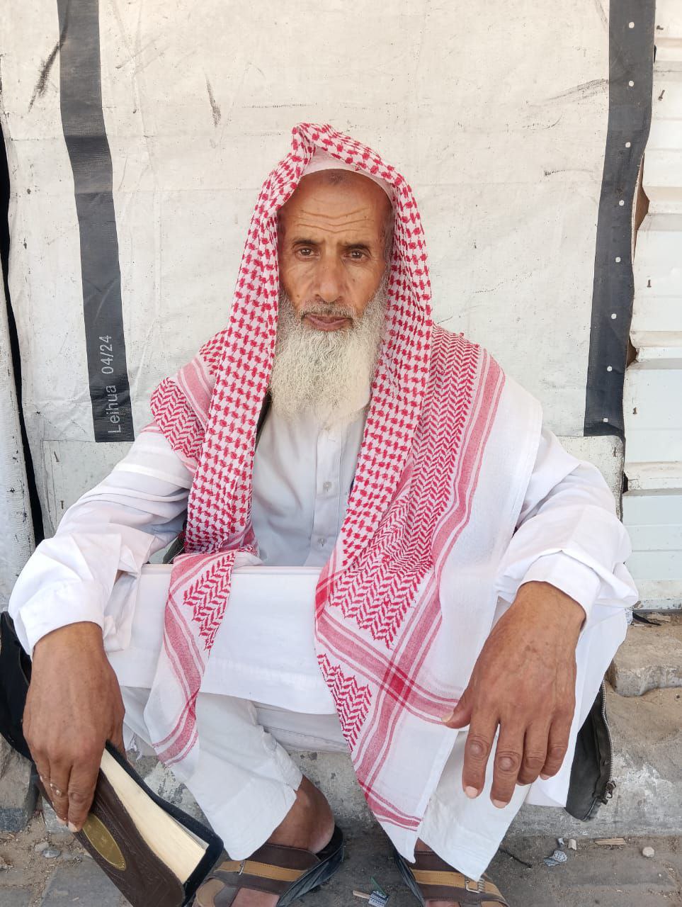 يكسو الشيب لحيته ورأسه كشاهد على سني عمره التي عاشها تحت وطأة العدوان الإسرائيلي الطويل، قائلا لصحيفة "فلسطين": الاحتلال بيضل عدوك، عدو الدين والإسلام".