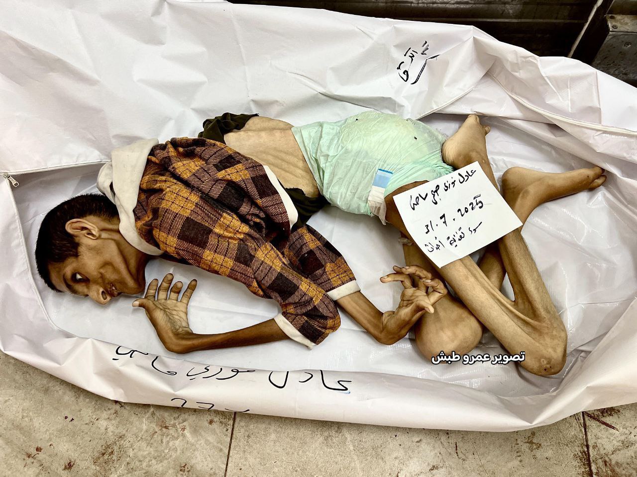 على سرير الموت، تكدّس جسد عادل ببطن غائر وعظام نافرة، في صورة موجعة تختصر ملامح مأساة الجوع في غزة، وسط انهيار المنظومة الطبية، وانعدام الغذاء والدواء والمياه الصالحة للشرب.