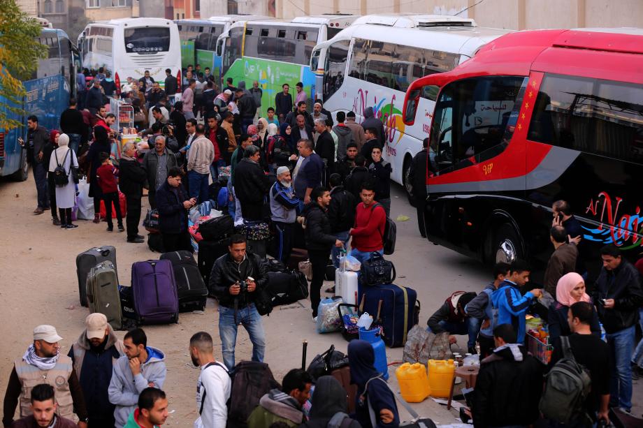 وقالت مصادر محلية إنه تم تجهيز عدد من الحافلات منذ صباح اليوم في صالة الشهيد أبو يوسف النجار بمدينة خان يونس، ثم توجهت إلى الصالة الفلسطينية من المعبر، استعدادا لدخولها إلى الصالة المصرية.