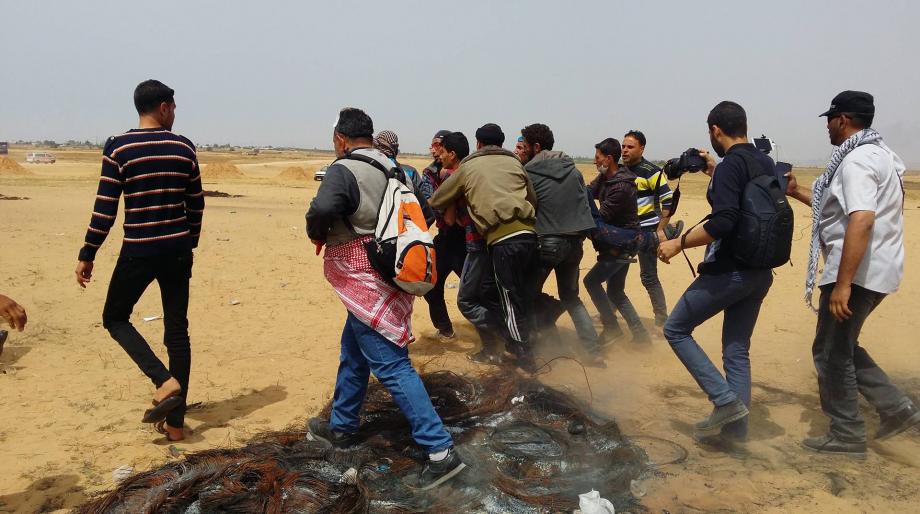وأشارت المصادر إلى إصابة شاب بقنبلة غاز في الرأس جراء إلقاء قوات الاحتلال الإسرائيلي عددًا كبيرًا من قنابل الغاز في ذات المنطقة. حيث نقل الشاب المصاب لتلقي العلاج، فيما أصيب آخرون جرّاء استنشاقهم للغاز وجرى علاجهم ميدانيًا.