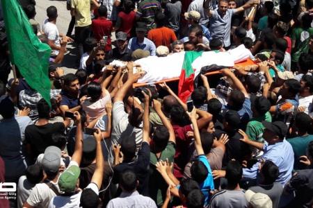 شيعت جماهير غفيرة ظهر اليوم السبت جثمان الشهيد الطفل ياسر أبو النجا، الذي ارتقى أمس الجمعة خلال مشاركته بمسيرات العودة شرق مدينة خان يونس جنوب قطاع غزة.