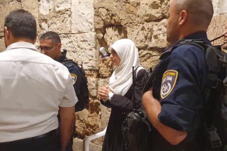 اعتقلت شرطة الاحتلال مساء الخميس الفتاة آية ابو ناب خلال دخولها لأداء صلاة المغرب من باب حطة إلى المسجد الأقصى.