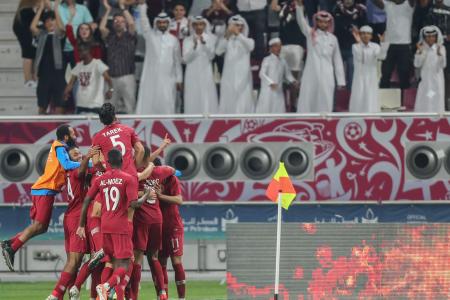 واكتسح المنتخب القطري نظيره الإماراتي بأربعة أهداف لهدفين، في مباراة الجولة الثالثة للمجموعة.