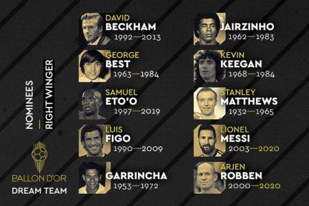 وكشفت مجلة "فرانس فوتبول" عن 10 أسماء جديدة تنافس على أفضل جناح أيمن في فريق الأحلام، ويتصدرهم الأرجنتينى ليونيل ميسي.