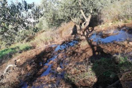 ضخّ مستوطنون، اليوم الخميس، مياها عادمة في أراضي المواطنين الزراعية بقرية اللبن الشرقية، جنوب نابلس.