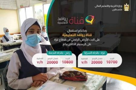 في ظل ظروف جائحة كورونا وتعطل الدوام المدرسي واعتماد وزارة التربية والتعليم أساليب مختلفة في التعليم عن بُعد؛ كالصفوف الافتراضية، والمواد المطروحة عبر بوابة روافد التعليمية الإذاعية وصفحة فيسبوك، أطلقت الوزارة قناة ومرئية "روافد التعليمية" تجريبيًّا على البث الأرضي الرقمي في قطاع غزة.