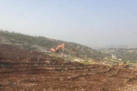 جرفت قوات الاحتلال الاسرائيلي ظهر اليوم الأحد، مساحات واسعة من الأراضي في بلدة خلة حسان غرب سلفيت.