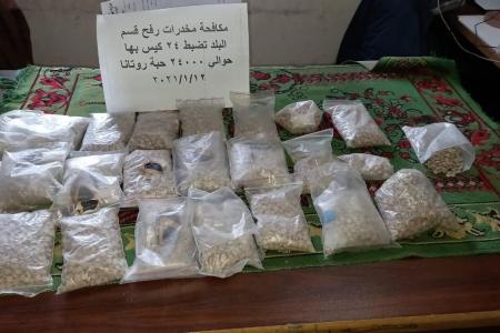 وقال مدير دائرة مكافحة المخدرات بمحافظة رفح المقدم موسى ظهير إن قوة مكافحة المخدرات بقسم البلد، وبالتعاون مع باقي الأقسام، تمكنت من ضبط 24 ألف حبة مخدرة من نوع "روتانا" خلال مهمة تفتيشية لمنزل المدعو (أ.م)، وهو أحد مروجي المخدرات.