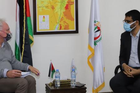 بحث وكيل وزارة الصحة بغزة د. يوسف ابو الريش مع مدير عمليات وكالة غوث وتشغيل اللاجئين السيد ماتياس شمالي، جملة من عناوين العمل المشتركة وجهود مواجهة جائحة كوفيد ١٩.