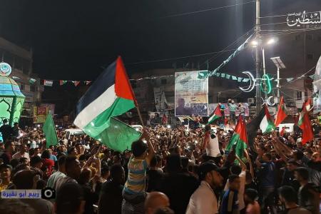 عمّت احتفالات المواطنين الفلسطينيين القدس وغزة ومدن الضفة المحتلة؛ تعبيرا عن السعادة بانتصار المقاومة الفلسطينية على الاحتلال الإسرائيلي خلال معركة "سيف القدس"، وذلك مع دخول التهدئة في تمام الساعة 2 فجر اليوم الجمعة.