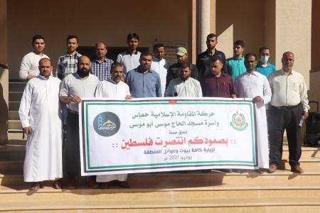 أطلقت حركة المقاومة الإسلامية "حماس" وأسرة مسجد الحاج موسى أبو موسى حملة زيارات عوائل المنطقة كافة تحت عنوان " بصمودكم انتصرت فلسطين" والتي تستهدف منطقة البراق والياباني غرب خان يونس.