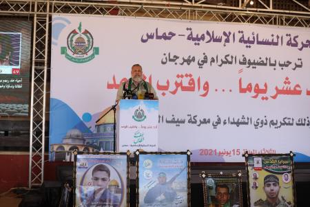 وقال المزيني في كلمة له بمهرجان نظمته الحركة النسائية الإسلامية بعنوان "11 عامًا.. واقترب الوعد" في قاعة الشاليهات بغزة أمس، إن النصر المبارك الذي صنعته المقاومة وعلى رأسها كتائب القسام الجناح العسكري لحركة حماس في معركة "سيف القدس" لم يكن وليد اللحظة بل بعد سلسلة كبيرة من الإنجازات والأعمال البطولية.