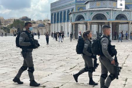 وأفادت مصادر محلية، بأن العشرات من جنود الاحتلال وأفراد الشرطة اقتحموا الأقصى، وتمركزوا على سطح قبة الصخرة، ومحيط مصلى باب الرحمة، وحاولوا منع تنظيم مسيرة سلمية مساندة للأسرى، ودفعوا بتعزيزات عسكرية إضافية.