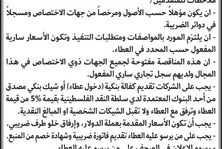 مناقصة (مشروع الاغاثة الشتوية) جمعية السلامة الخيرية 2021-12-19T15:42:00+02:00 صحيفة فلسطين مناقصة مشروع الاغاثة الشتوية جمعية السلامة الخيرية