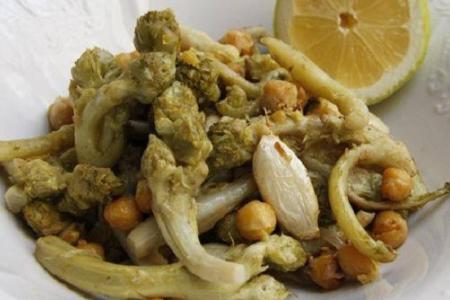 والفرع الذي يحمل كمية أكبر من رؤوس (ثمار) العكوب الأكثر مبيعًا والأطيب طعمًا، وليس الأضلاع الخالية، ويطهى بطرق مختلفة، فقد يقلى وحده ويضاف له اللحم أو البيض، ويؤكل بالخبز في هذه الطريقة.