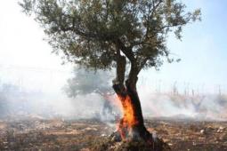 مستوطنون يحرقون أراضي زراعية شمال شرق رام الله