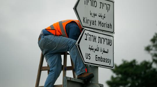 بدء وضع لافتات"السفارة الأمريكية" في القدس المحتلة