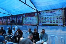 خيمة تضامنية تجسد معاناة الأسرى أمام الصليب الأحمر بغزة