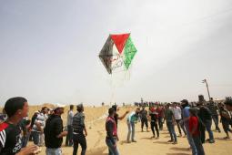 المتظاهرون يرسلون عبر طائراتهم الورقية رسائل تطالب الاحتلال بالرحيل