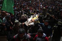 آلاف الفلسطينيين يشيعون جثمان الشهيد أبو عمشة ببيت حانون