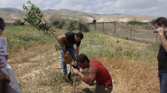فلسطينيون يزرعون أشجاراً بأراض مهددة بالمصادرة بالضفة