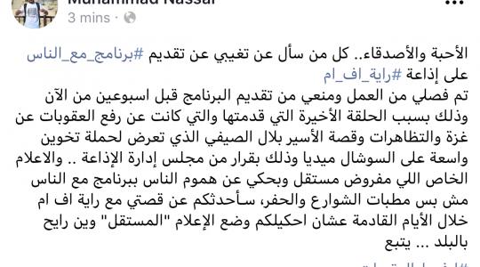 فصل صحفي برام الله لـ"تناوله" العقوبات على غزة إذاعيًا