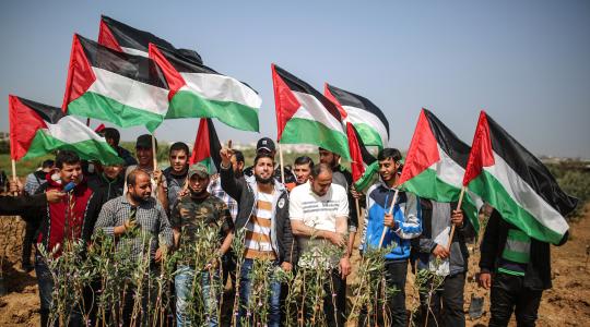 فلسطينيون يزرعون أشتال الزيتون بالقرب من حدود غزة