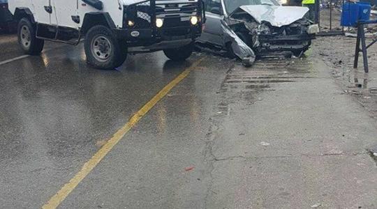 إصابة 4 مواطنين صدمتهم مركبة شرطة إسرائيلية قرب حلحول