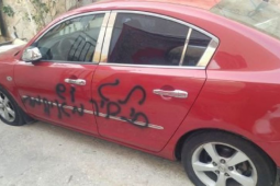 مستوطنون يعطبون إطارات مركبات مقدسية ويخطون شعارات عنصرية