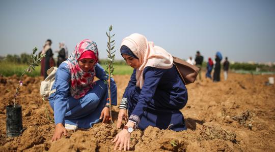 فلسطينيون يزرعون الأشجار في أراض مهددة بالمصادرة