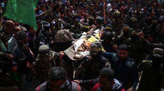 آلاف الفلسطينيين يشيعون جثمان الشهيد أبو عمشة ببيت حانون