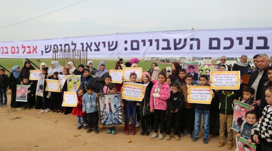 أهالي الأسرى يتظاهرون قرب السياج الفاصل للمطالبة بالإفراج عن أبنائهم