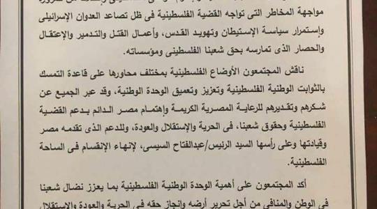بيان القاهرة الختامي: الاتفاق على تسهيل عمل الحكومة وجولة جديدة في فبراير المقبل