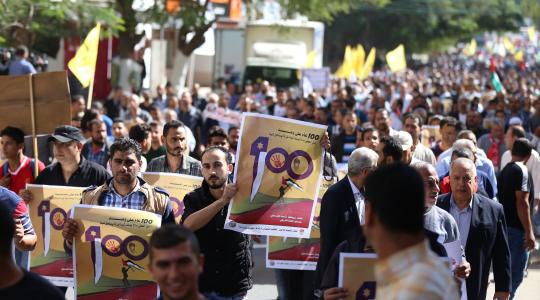 مسيرة في غزة تنديدًا بالذكرى المئوية لـ"وعد بلفور"