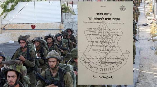 تعميم داخل جيش الاحتلال يحرض على الانتقام للمستوطن القتيل قرب نابلس