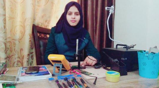 "بابل قديح" أول فتاة غزية تختص بصيانة هواتف النساء