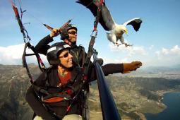 حط على عصا السيلفي... نسر يقدم مساعدة لطائرة شراعية على ارتفاع شاهق