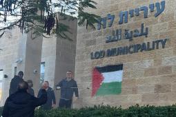 مجهولون يرسمون العلم الفلسطيني على جدار مبنى بلدية اللد