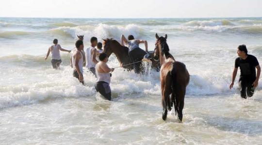 حيوانات "الكارو" على شاطئ غزة تعكر مزاج المصطافين