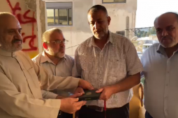 القيادي حسن يوسف يسلم عائلة الشهيد "الخواجا" مصحفه الخاص داخل السجن