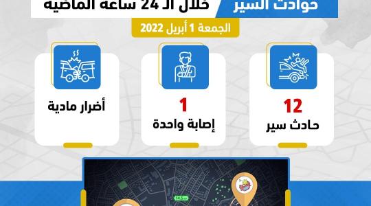 "المرور": إصابة متوسطة في 12 حادث سير الخميس